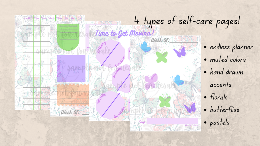 This printable PDF features hand drawn butterfly and floral accents in muted colors that won't suck all the ink out of your printer. Each bundle includes 4 PDFs in US Letter size (8.5" x 11"). You'll get: